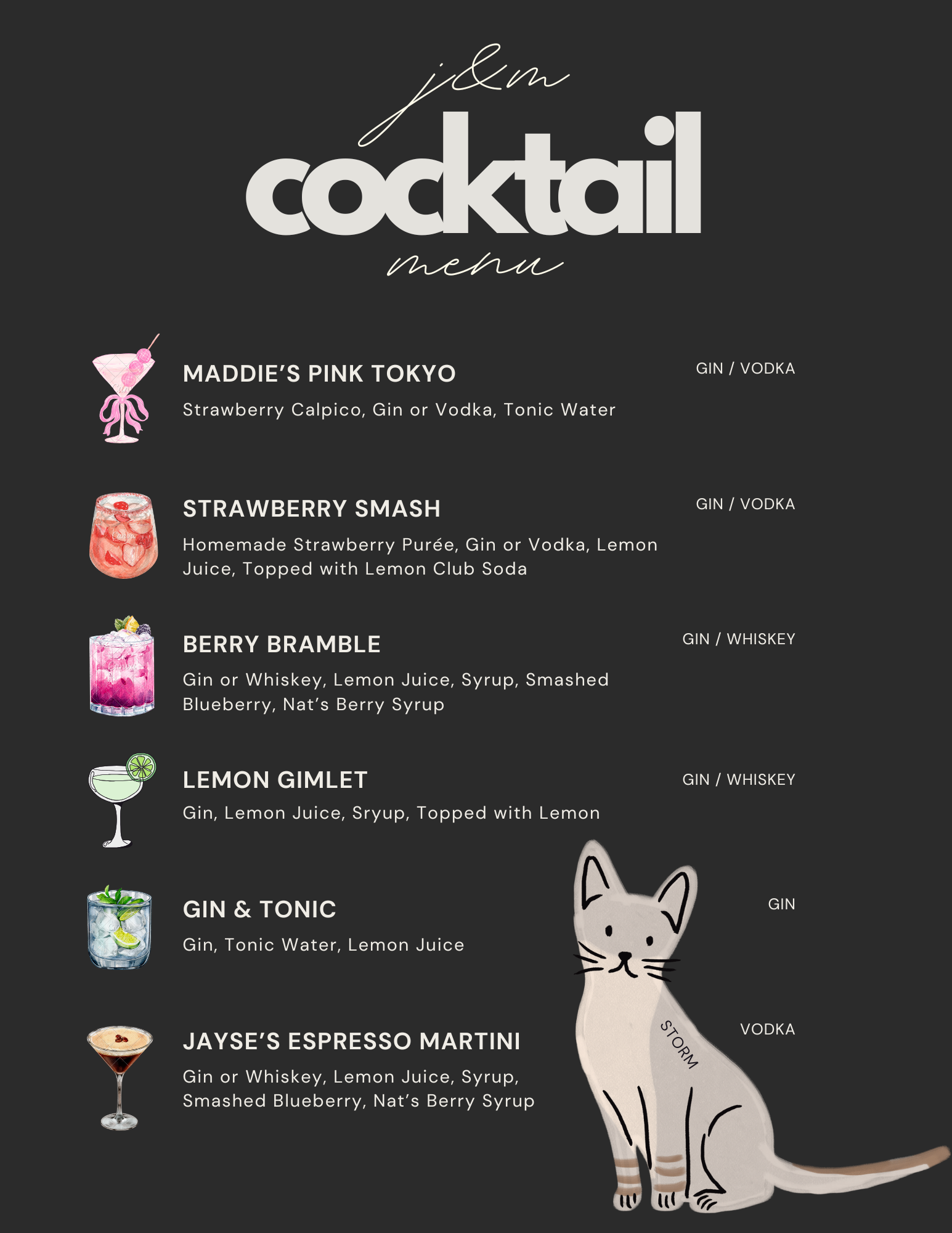 Welcome to Maddie and Jayse Night Bar. See below for the Menu.